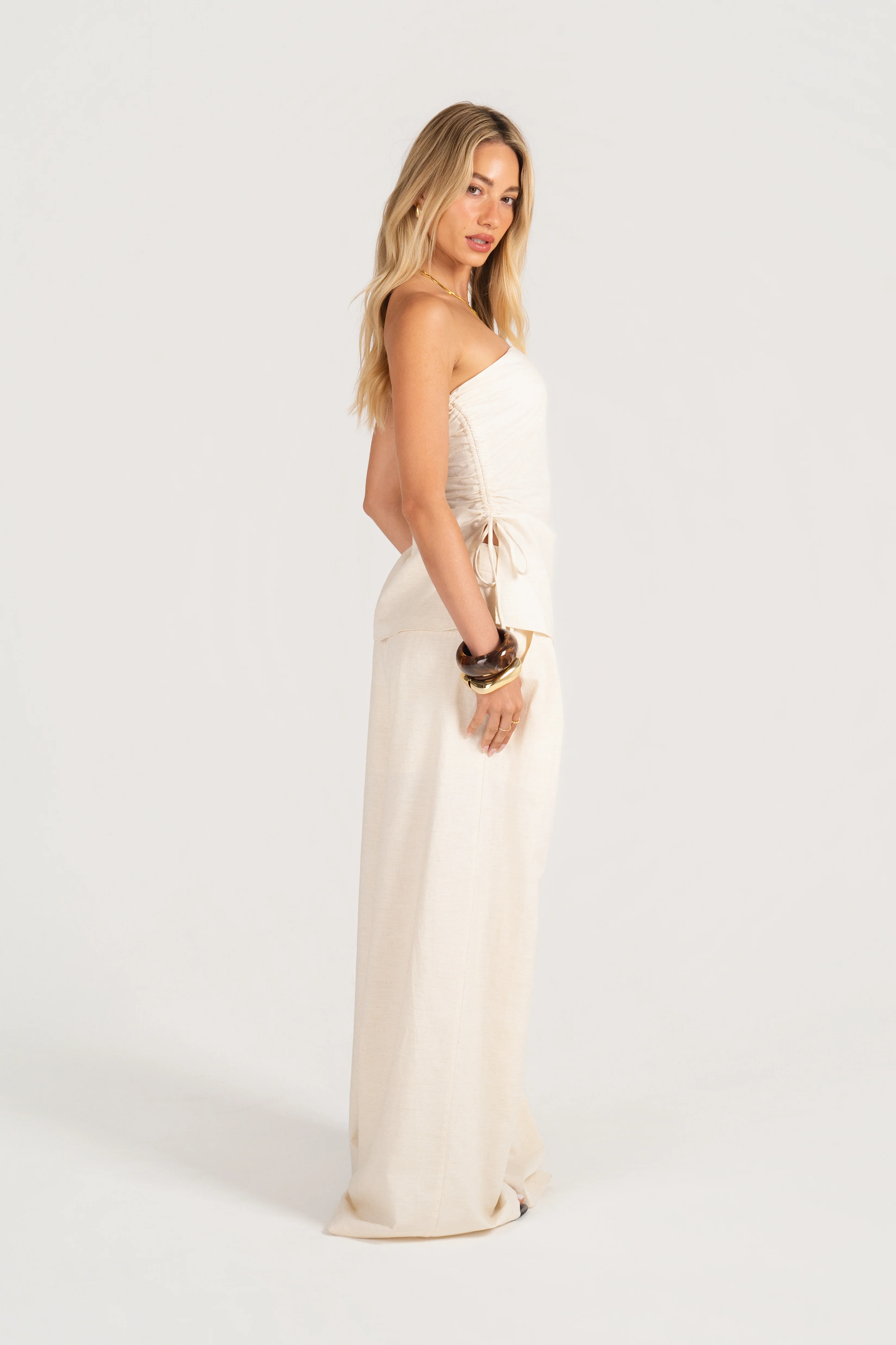 Corrine Set - Strapless Side-Ruched Top with Wide-Leg Pants
