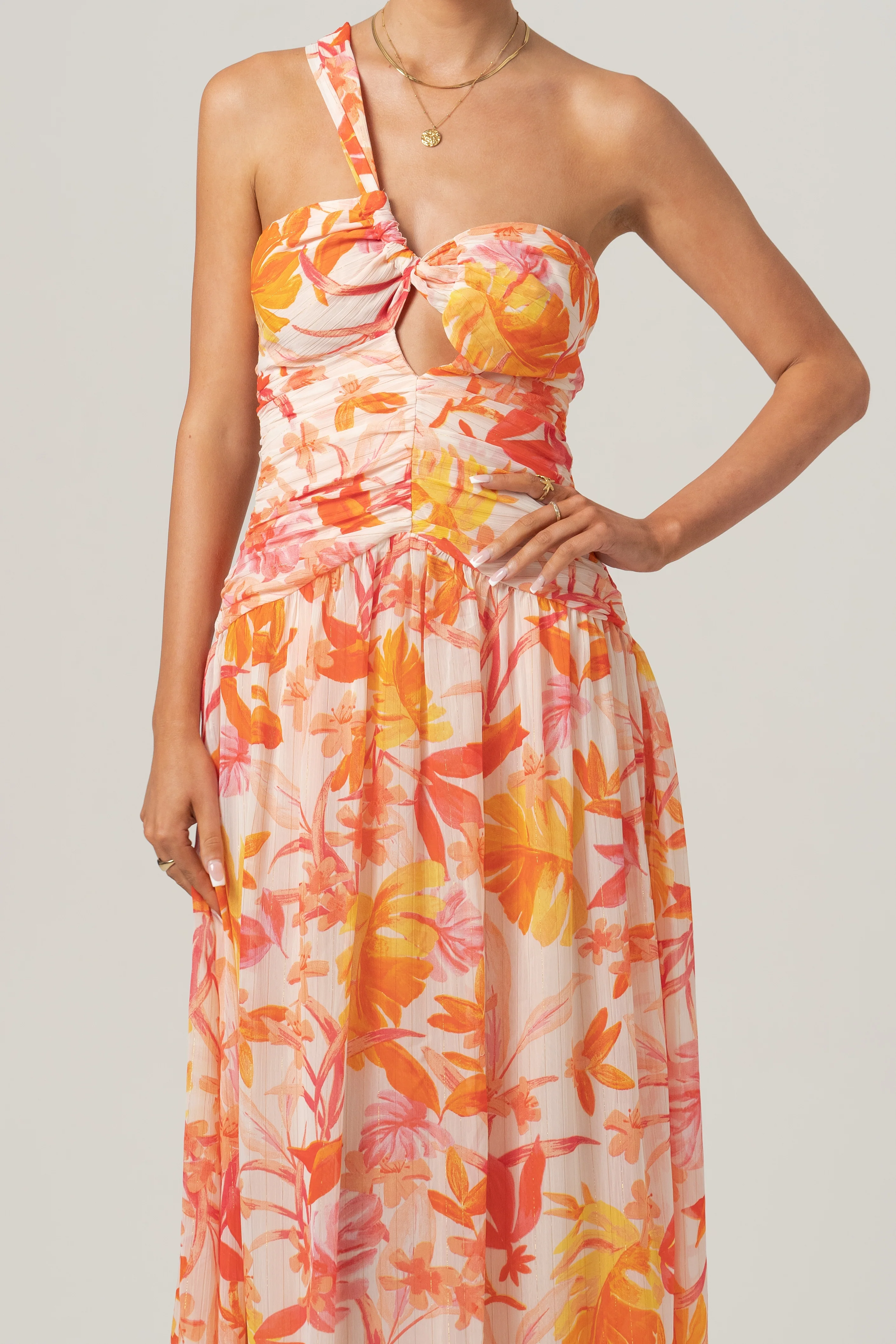 Samara One-Shoulder Midi Dress - Tropical Print