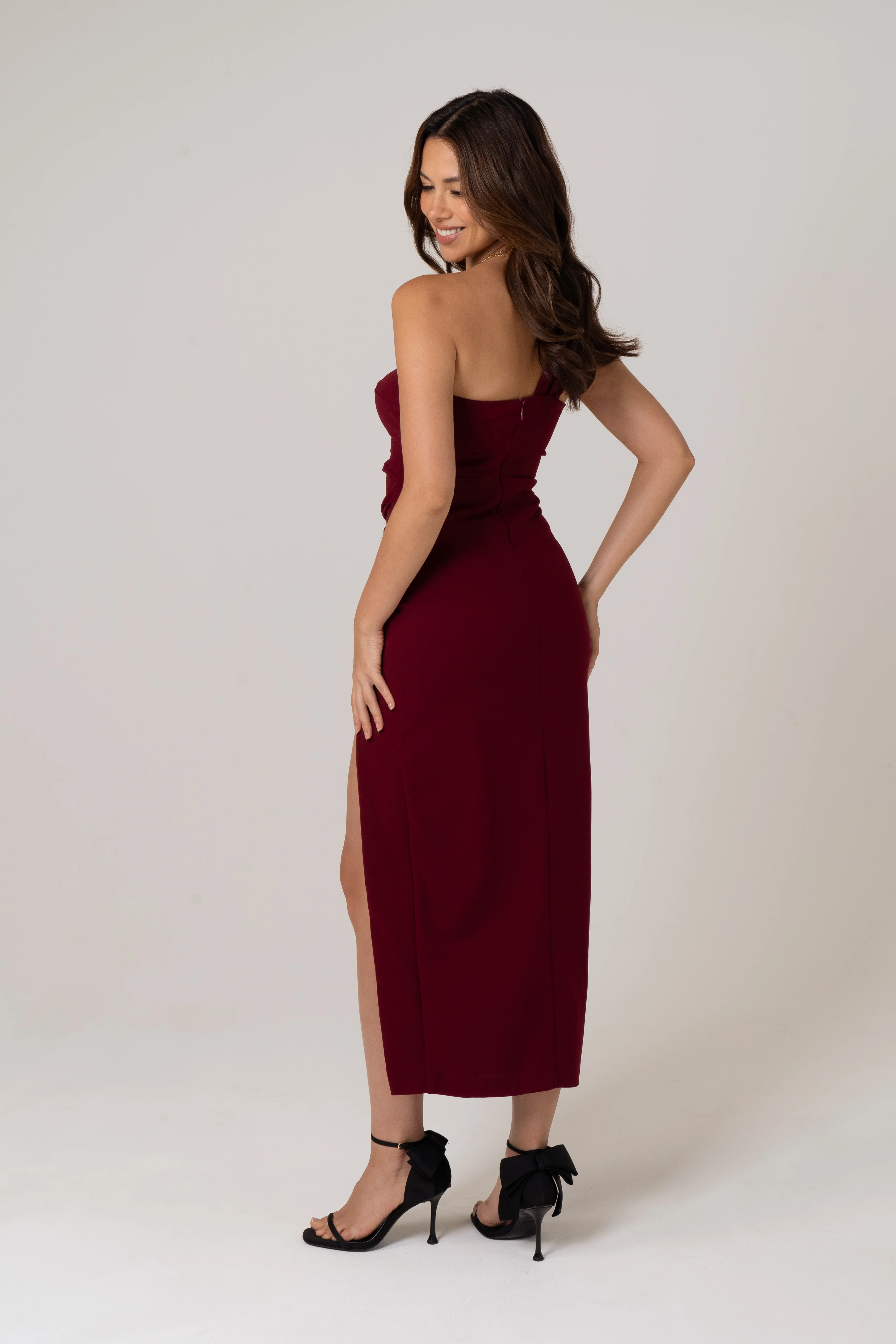 Tana Maroon One Shoulder Midi Dress